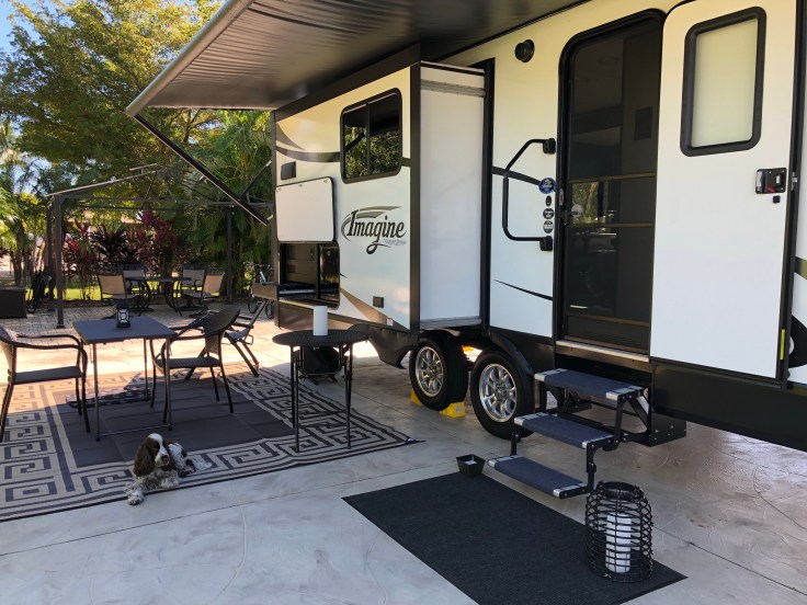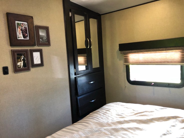 Today we’d like to share some pictures with you about our life in our RV (recreational vehicle). We enjoyed a day just relaxing in the campground around our trailer and were researching for our next campgrounds.