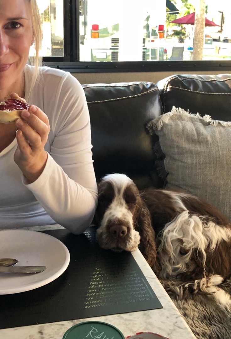 In all campgrounds there is a “always on the leash” rule and a designated area where they can pee and poo. They are not allowed to stay alone in a RV more than 30 minutes – but are not allowed in any restaurant nor any beach (besides some seldom designated dog beaches). So.. how should we ever go in a restaurant or at a beach?