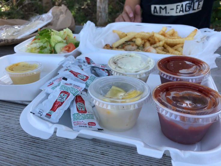 we got: Sauce (3 different ones and lots of Ketchup) with Fish&Chips 😁. But absolutely delicious 😋