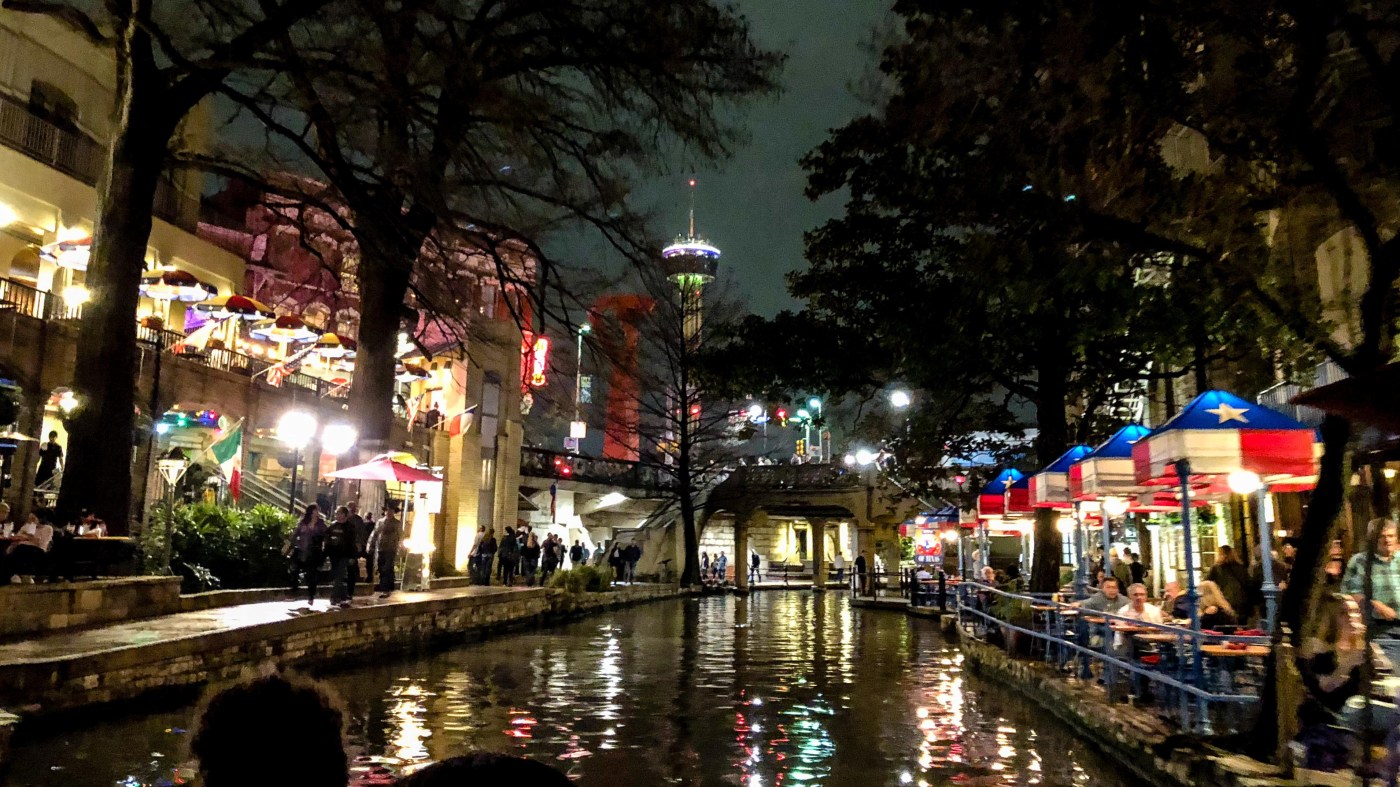 Riverwalk (Downtown San Antonio) by night: