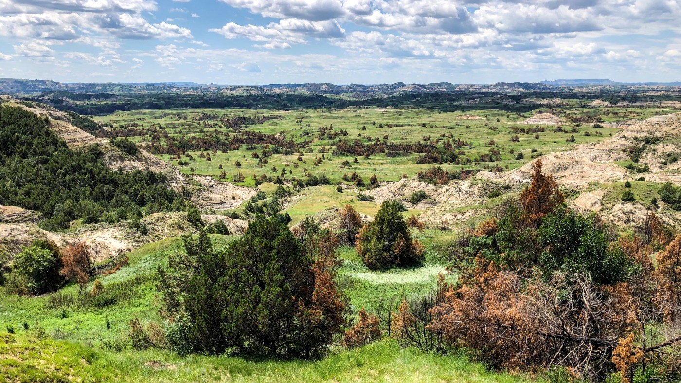 From my base camp in Makoshika State Park (see here) I made a day-trip to Theodore Roosvelt National Park in Noth Dakota. I visited the South Unit, drove the scenic loop and walked a couple of really short hikes (because – one more time – I had to leave Eyra in the car). But I enjoyed the nice landscape, the views, some wild horses and bison.